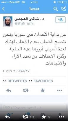 الارهابي السلفي الكويتي شافي العجمي يتراجع عن تصريحاته الدموية بعد تهديده بسحب جنسيته
