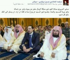 سعد الحريري يصلي صلاة العيد بحذائه داخل المسجد وعن يمينه وشماله شيوخ الدجل والارهاب