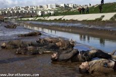 بالصور: مجزرة جماعية ترتكبها عصابات جبهة النصرة بحق عشرات المخطوفين وألقت بجثامينهم في نهر قويق بحلب