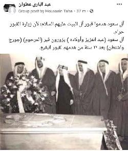 بالصورة .... ال سعود المجرمين هدموا قبور ال البيت عليهم السلام تحت زعم حرمة زيارة القبور بينما يزورون قبر احد رؤساء امريكا