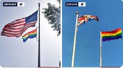 للمره الاولى في دول الخليج ..السفارتان الامريكيه والبريطانيه لدى الامارات ترفع علم القوس قزح الذي يرمز لمجتمع "للمثلينيين".