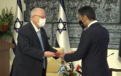 السفير الإماراتي الأول لدى كيان الاحتلال الاسرائيلي محمد محمود آل خاجة يقدم أوراق اعتماده للرئيس رؤوفين ريفلين