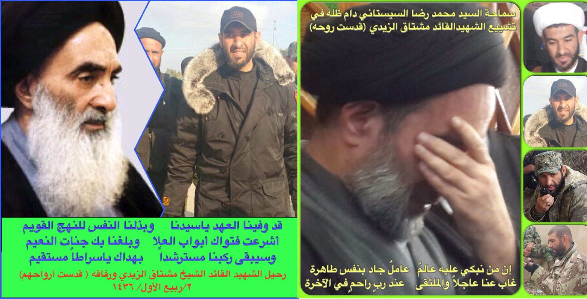 صبيحة اليوم الثاني من ربيع الأول لعام 1436 هجرية – الخميس 25/12/2014 التحق بركب الشهداء، وهم يصعدون حفاة الى السماء حيث دلائل الله، تاركاً وراءه شهيداً أسمه "مشتاق الزيدي" وإرثاً علمي وجهادي يقول فيه" لا إشكال ولا شبهة، أن هذا المشروع الإلهي، الذي بدأ بيد المرجعية ولسانها، هي النيابة الحقيقة للمعصوم في عصر الغيبة، ونحن نقول تبعاً لأمتنا، بأنا على مسيرة الحق سائرون، وسوف لن تنام لنا عين، حتى نطهر أرض العراق، وندافع عن جميع المقدسات)