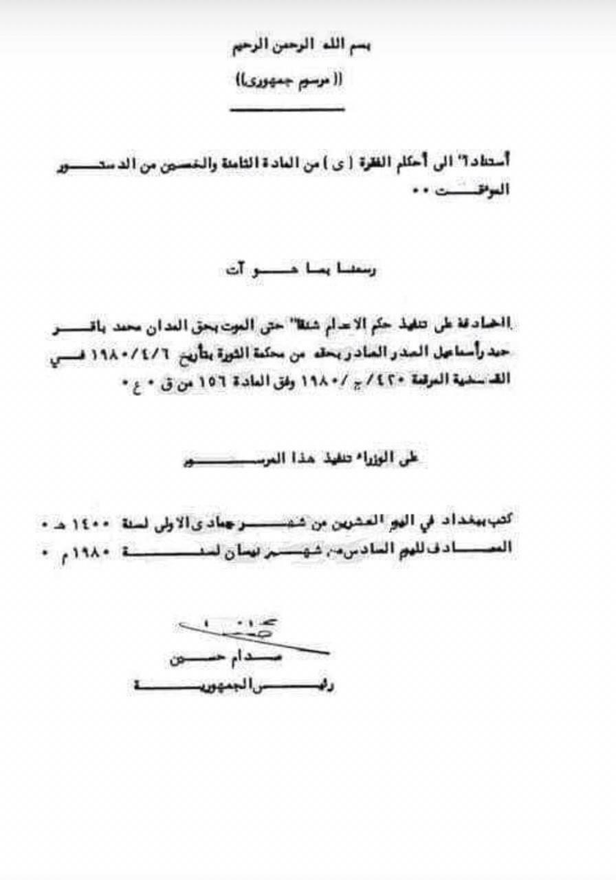لاتهمني صحتي ولايهمكم ما انا به، الاهم العراق والاسلام، بتلك العبارات اختتم رضوان الله عليه مكالمتة الهاتفية مع اقرب المتصلين به لتبقى تلك الكلمات مصدر اصرار وشجاعة موقف، ضد حكم الطغاة العفالقة.وما لف لفهم من قوى استكبارية وصهيونية، بعد ان تبين لهم بأن مدرسة الامام الخميني رضوان الله عليه وحوزة النجف وعلومها الدينية لازالت ولودة بعد ان غيبة قوميتهم ومدنيتهم دورها في فترة من الزمن، لتنهض من جديد على يد مجموعة من العلماء الفضلاء الدعاة الثائرين، وتنطوي تلك الفترة السباتية من فترات سكون الحوزة وتزمتها بمبدء التقية.