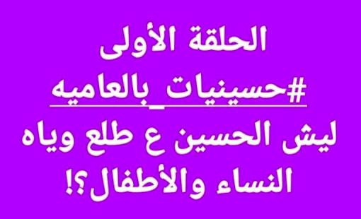 على العموم : هواي نسمع ليش الامام الحسين ع اخذ الاطفال والنساء وياه للحرب ؟ وعلى كولة شاب مدني عمره 18 سنة كاعد بالكهوه وحاط رجل على رجل ( الحسين طلع منتحر لو لا )؟ هسه هذا الكاعد يمه اذا كال اي طعن بالحسين واتهمه بقتل نفسه واولاده؟ واذا كال لا فهو نسف عصمته واسقط إمامته؟ لان الحسين امام معصوم يعلم بالغيب, يعني يعرف نفسه مقتول وعائلته راح تشوف الظيم خلافه، فيبقى محتار لا حول اله ولا قوة، وجوابه يكون بالسكوت وتدخين الجكاره من الحركه.