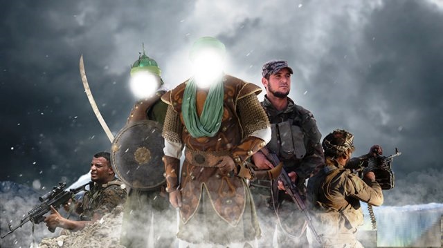 اليوم ونحن نواجه طواغيت هذا العصر امريكا وإسرائيل وادواتهم ومواليهم احفاد بنو امية بنوسعود وداعش وكل من تحالف معهم من المتجبرين والمتسلطين من ارتصوا في صف الباطل وقاتلوا في لواءه تحت راية الملعونين من اليهود والذين اشركوا من دول الغرب الإستكبارية؛ اليوم ونحن نواجه تحت راية الحق في ظل الحشدنا الحسيني ؛ من قاد الحشد ضد الظلم والظالمين والفساد والمفسدين ؛ هذه الحشد الشعبي هو امتداد لثورة جده الحسين عليهما السلام ؛