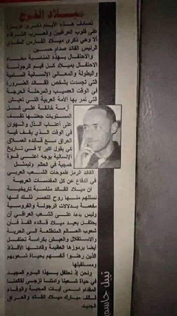 لذلك اريد ان اذكر الدكتور المبجل نبيل جاسم كيف كان يكتب للطاغية المقبور صدام التكريتي وكيف كان يتملق له ويمجده ويسجد له