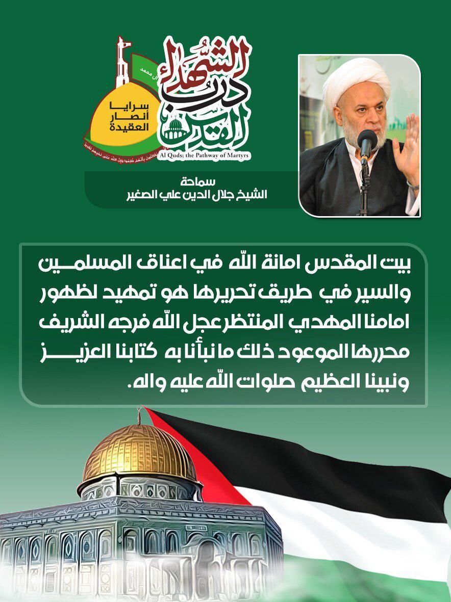 ان تحرير القدس الشريف وعد الهي ونبوءة محمدية والتزام مهدوي، المتمثل بقوله تعالى الذي يخاطب به بني اسرائيل: { فَإِذَا جَاءَ وَعْدُ الْآخِرَةِ لِيَسُوءُوا وُجُوهَكُمْ وَلِيَدْخُلُوا الْمَسْجِدَ كَمَا دَخَلُوهُ أَوَّلَ مَرَّةٍ وَلِيُتَبِّرُوا مَا عَلَوْا تَتْبِيرًا [الإسراء: ٧]} ولا يجد المنتظرون أي فرصة إمامهم لتحقيق الانتظار الجاد والنصرة الصادقة لإمامنا ارواحنا فداه الا من خلال العمل الدؤوب في أي عمل من شأنه تحقيق هذه النبوءة ونصرة ذلك الالتزام.