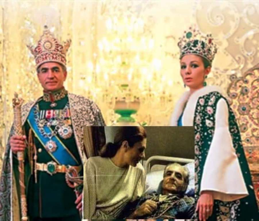 صورة لإمبراطور إيران الذي لقب نفسه شاهنشاه .. أي ملك الملوك ، مستلقي على الفراش مع زوجته ينتظر الموت !!