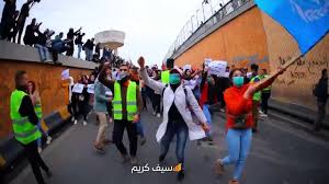 التي تقدمت المتظاهرين برداء المسعفة
