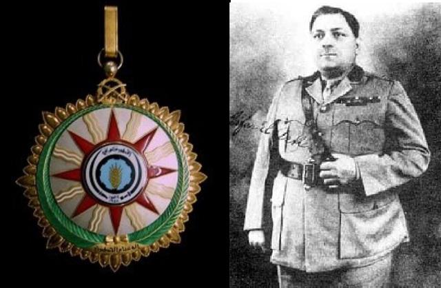 الصورة الاولى للوسام الجمهوري العراقي 1958 والصورة الثانية للفريق جعفر العسكري اول وزير دفاع في تاريخ الجيش العراقي