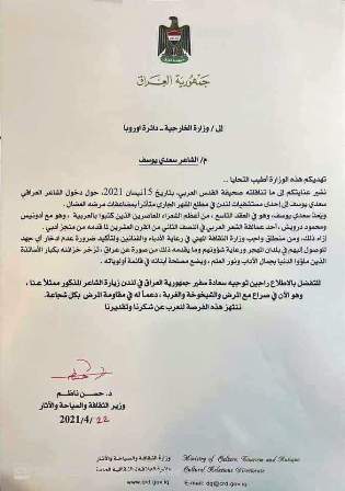 فإذا كان الأمر كذلك فكتابكم إذاً يطلب من سعادة السفير أن يُعِين سعدي يوسف على الغربة التي يصارعها بسببكم !