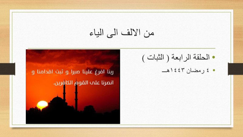 وفي الاية الكريمة التي تصدرت حلقة اليوم وما يسبقها من احداث في قصة طالوت يتبين فيها مقدمات الثبات فإقامة البرهان العقلي في الاعتقاد يكون في المقدمة ومن ثم إسماع القلب والوجدان بما اقرّ به العقل وحثه على الصبر والذي يمثل الثبات المعنوي ومن ثم يأتي الثبات السلوكي وثبت اقدامنا في اشارة للحركة العملية الواجب اتخاذها ، لقد كان دعائهم بحق دعاءا ً واعيا ً طالبا ً للثبات وهم بمعية قائدهم فماذا عن ملامح دعائنا ونحن نعيش غيبة لقائدنا طال امدها !!! .