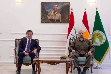 السيد بافِل، يستقبل نيجيرفان بارزاني في السليمانية، ونلاحظ لغة العسكر طاغية على حضور السيد بافِل، خلافًا للمدنية المائلة (صوب اليسار) لنيجيرفان؛ حيث يتموضع حليف الإطار التنسيقي!