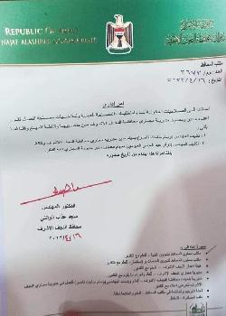 اعفاء مدير مديرية مجاري النجف ومعاونه وتكليف بديلاً عنهم