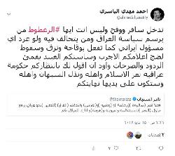 القنصل الامريكي في البصرة يعترف ويؤكد تطاوله على مرجعنا وقائدنا السيد السيستاني سدد الله حكمته