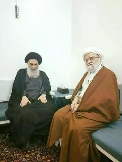 احدث صورة للامام المفدى السيد علي السيستاني مع احد العلماء من مدينة قم المقدسة