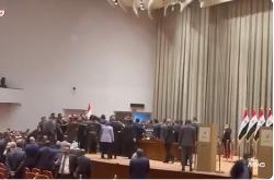 مشاهد جديدة للشجار الذي نشب بين النواب السنة والفوضى التي عمت قبة البرلمان اليوم بسبب تسمية رئيس برلمان جديد