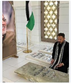الشهيد السعيد ناجي الكعبي اثناء زيارته لمرقد الشهيد القائد ابو مهدي المهندس ( ارشيف )...