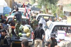 الدعم الشعبي يشارك في الانتصارات ويدعم الجبهات ....قافلة مكونة من 17 شاحنة تصل إلى شمال الفلوجة