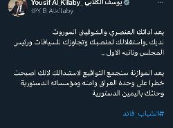 في تغريدة له ... النائب يوسف الكلابي يوجه انتقادا كبيرا للنائب الثاني لمجلس النواب شاخوان عبد الله بعد تاجيل جلسة التصويت على الموازنة