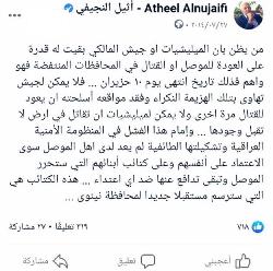 حتى لا ننسى .... هذا ما كتبه محافظ نينوى الاسبق الارهابي اثيل النجيفي بعد سقوط الموصل بيد داعش الارهابي