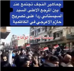 بالفيديو ::الجماهير تجتمع عند بيت المرجع الاعلى السيد السيستاني ردا على تصريح حازم الاعرجي