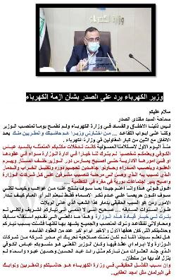 رسالة منسوبة لوزير الكهرباء المستقيل الى مقتدى الصدر يتهم فيها قياديين في التيار الصدري بادارة الوزارة دون موافقة وعلم الوزير