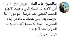 الشيخ خالد الملا مغردا ردا على الاصوات النشاز التي اتهمت الحشد الشعبي بارتكاب جريمة البو دور