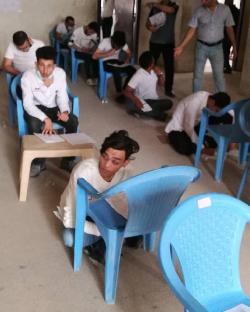 بالصور ... في الناصرية .. وبسبب انعدام "الرحلات" تم استئجار كراسي مع "طبلات" ليتمكن الطلبة من اداء امتحانات نصف السنة