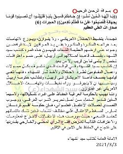 سبع لاءات تضمنها بيان الامام المفدى السيد علي السيستاني في استقباله لبابا الفاتيكان
