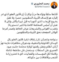 في تغريدة له الحلبوسي يتهجم على المحكمة الاتحادية ويهدد بالتظاهرات!