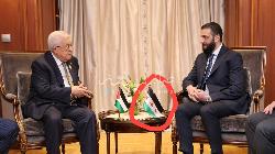 وضع علم عصابات الجولاني بالمقلوب خلال لقائه بالارهابي الفلسطيني محمود عباس ابو مازن في مصر