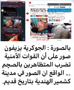 بالصورة ....عصابات الجوكر تزيف الصور على انها في العراق وفي الحقيقة في كشمير الهندية بتاريخ قديم