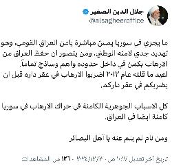 الشيخ جلال الدين الصغير مغردا : ما يجري في سوريا يمس مباشرة بالامن القومي العراقي