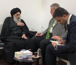 صورة حديثة للامام المفدى السيد علي السيستاني وهو يلتقي بممثل الامين العام للامم المتحدة