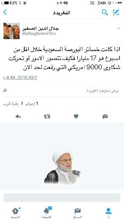 الشيخ جلال الدين الصغير: البورصة السعودية خسرت 17 مليار دولار خلال أسبوع، فكيف تتصور الأمور أذا تحركت شكاوى 9000 امريكي التي رفعت حتى الآن..!