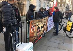 ناشطون يرفعون صور شهداء البحرين امام مقر رئاسة الوزراء البريطانية ويتهموها بالتواطؤ مع النظام الخليفي