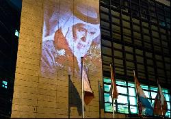 المعارضة البحرانية في ألمانيا تطبع صورا ليزرية لقادة الثورة على مبنى السفارة الخليفية في برلين