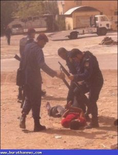 صورة لقيام قوات النظام البحريني بتعذيب أحد المواطنين في قرية "سند"