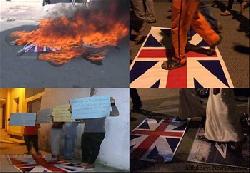 محتجون يحرقون علم بريطانيا رفضا لزيارة ماي للبحرين