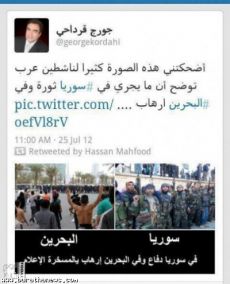 المذيع اللبناني الشهير جورج قرداحي ينصف القضية البحرينية في تغريدة له على التويتر + صورة