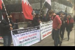 معتصمون أمام رئاسة الوزراء البريطانية: النظامين الخليفي والسعودي سبب لعدم الإستقرار الأمني والإقتصادي
