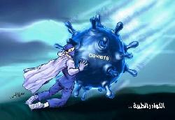 كورونا ..انطينه عطوة..! كاريكاتير ـ علي عاتب || موجة مرعبة من فايروس كورونا الملعون الصفحة ، يطرق الابواب بلا إستئذان ، لابد من التصدي له بأخذ جرعة من اللقاح، طالما هي متوفرة في كل المفاصل الصحية .
