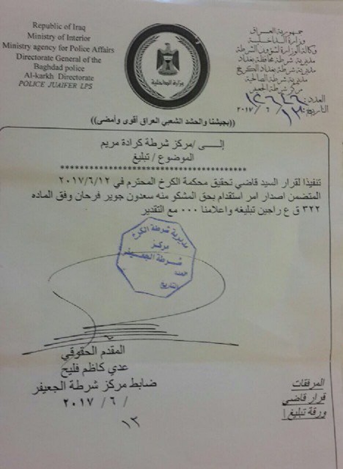 بالوثيقة : مذكرة قبض صادرة من محكمة تحقيق الكرخ بتأريخ 11-8-2020 بحق زعيم جبهة النصرة أبو محمد الجولاني.
