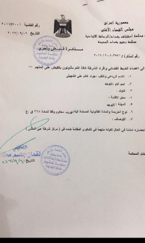 وقال الناطق الرسمي للوزارة العميد سعد معن في بيان إن "الوزارة اتخذت الاجراءات القانونية بحق النائب السابق جواد الشهيلي وهو موقوف حاليا وفق المادة ٢٦٨ من قانون العقوبات في احد مراكز الشرطة".