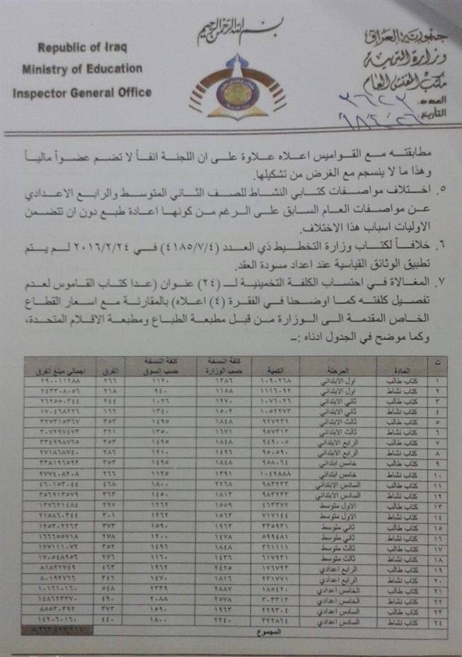 بالوثائق .... الكشف عن قساد مالي في عملية طبع الكتب المدرسية ارتكبته وزارة التربية