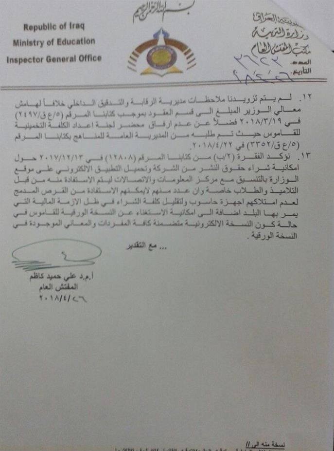بالوثيقة التربية النيابية تعلن عن رفع كتاب عاجل الى وزارة التربية لأعادة العمل بنظام تحسين المعدل.