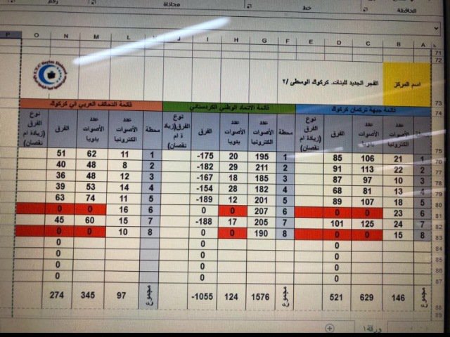 وتابع "وحصل الاتحاد الوطني الكردستاني على ١٥٧٦ صوت الكترونيا في العد والفرز وعند العد والفرز الالكتروني حصل على ١٢٤ صوت، بفارق ١٠٥٥صوت".