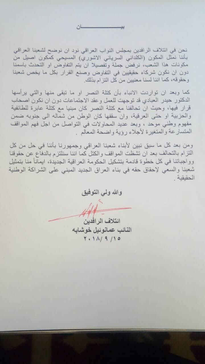 بالوثيقة .. ائتلاف الرافدين ينسحب من تحالف العبادي بسبب “تشظي المواقف”